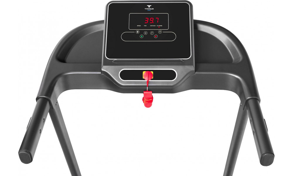 Электрическая беговая дорожка Titanium One T32 С APP ориентирована на пользователей с начальным и средним уровнем подготовки. Ее основном предназначение – ходьба и бег на небольших скоростях. Скоростной диапазон дорожки варьируется в диапазоне от 1 до 10 км/ч. Размер бегового полотна 110*39 см позволяет комфортно тренироваться при указанных значениях скорости. Заниматься на Titanium One T32 C APP может пользователь ростом вплоть до 190 см, но есть ограничение по максимальному весу пользователя - 100 кг. Если вес превышает это значение, следует обратить внимание на модели уровнем выше. Несмотря на отсутствие специальных элементов амортизации дорожку нельзя назвать жесткой – парафинированная дека толщиной 1,5 см обладает неплохими демпфирующими свойствами. Для создания дополнительной мягкости лучше заниматься на ковре или специально предназначенном для этого полиуретановом коврике для фитнес оборудования. Тренировочный компьютер представлен дисплеем с яркими красными светодиодами. Навигация проста и понятна, а сам переход между программами и функциями идет через приятные в использовании сенсорные клавиши. На экран выводятся все основные параметры тренировки - время, скорость, дистанция, потраченные калории и пульс. В программный пакет входят 12 предустановленных программ, направленных на тренировку скоростных качеств, выносливости, укрепления сердечно-сосудистой системы и похудания. Также можно воспользоваться одной из трех программ обратного отсчета (время, дистанция или калории). На поручнях расположены сенсорные датчики пульса. Небольшая, но приятная опция – подставка под телефон или смартфон. Во время тренировки можно включить фильм или сериал, это помогает отлично справиться с однообразием тренировок. Titanium One T32 С APP складывается и раскладывается за несколько секунд за счет двухфазной гидравлики easy-DROP™. Дорожка компактная по своим размерам – в сложенном виде она занимает всего 80 см в длину и 71 см в ширину. Переместить ее также просто – достаточно немного наклонить и затем транспортировать на 2-ух транспортировочных роликах. Если поверхность для тренировки не совсем ровная, выровнять положение дорожки помогут резиновые компенсаторы неровностей пола. Отдельно стоит сказать об интеграции Titanium One T32 С APP со сторонними приложениями, существенно расширяющими возможности тренировки. Первое приложение – Fitshow – является полностью бесплатным. Fitshow предоставляет набор дополнительных тренировочных программ, сохраняет и анализирует статистику. Здесь можно соревноваться с другими пользователями, создать сообщество и добавить друзей, поделиться результатами в соцсетях. При желании можно управлять тренажером прямо со своего смартфона. Если Вы занимаетесь спортом на улице – отлично, данные не пропадут и синхронизируются с результатами тренировки на беговой дорожке. Второе высокотехнологичное приложение Zwift является по сути симулятором виртуальной реальности и ориентировано на велосипедный спорт, бег и тренировки на тренажерах. Это действительно классное приложение с невероятным уровнем визуализации и погружения. Преимущества: • Классический форм-фактор • Предназначена для ходьбы и бега трусцой • Максимальная скорость до 10 км/ч • LED дисплей с сенсорными клавишами • Подставка под мобильное устройство • Приложения Zwift и Fitshow расши