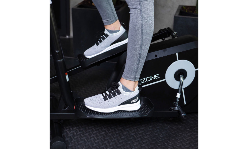 Эллиптический тренажер DFC GOZONE – это домашний кардиотренажер, предназначенный для тренировки сердечно-сосудистой системы, повышения выносливости и укрепления мышц ног, ягодиц и спины. Регулярные занятия на эллипсоиде способствуют снижению лишнего веса, улучшению общей физической формы и нормализации пульса. Инерционный маховик эллиптического тренажера DFC GOZONE весит 4 килограмма. Однокомпонентный кривошип может крутиться в обе стороны, что позволяет выполнять упражнения с разной интенсивностью и нагрузкой на мышцы. Консоль эллиптического тренажера отображает основные параметры тренировки: время, скорость, пройденное расстояние, сожженные калории и частоту пульса. Для функционирования консоли требуются две батарейки типа ААА (не входят в комплект). Эллиптический тренажер GOZONE оснащен магнитной системой нагрузки с 8 уровнями регулировки, что обеспечивает плавную и тихую работу тренажера. Максимальный вес пользователя составляет 120 кг. Транспортировочные ролики и компенсаторы неровности пола обеспечивают удобство перемещения и установки тренажера, а также позволяют сгладить неровности пола для более комфортной тренировки. Размер эллиптического тренажера в рабочем состоянии составляет 102.5 х 58.5 х 153 сантиметра, что делает его компактным и подходящим для домашнего использования.